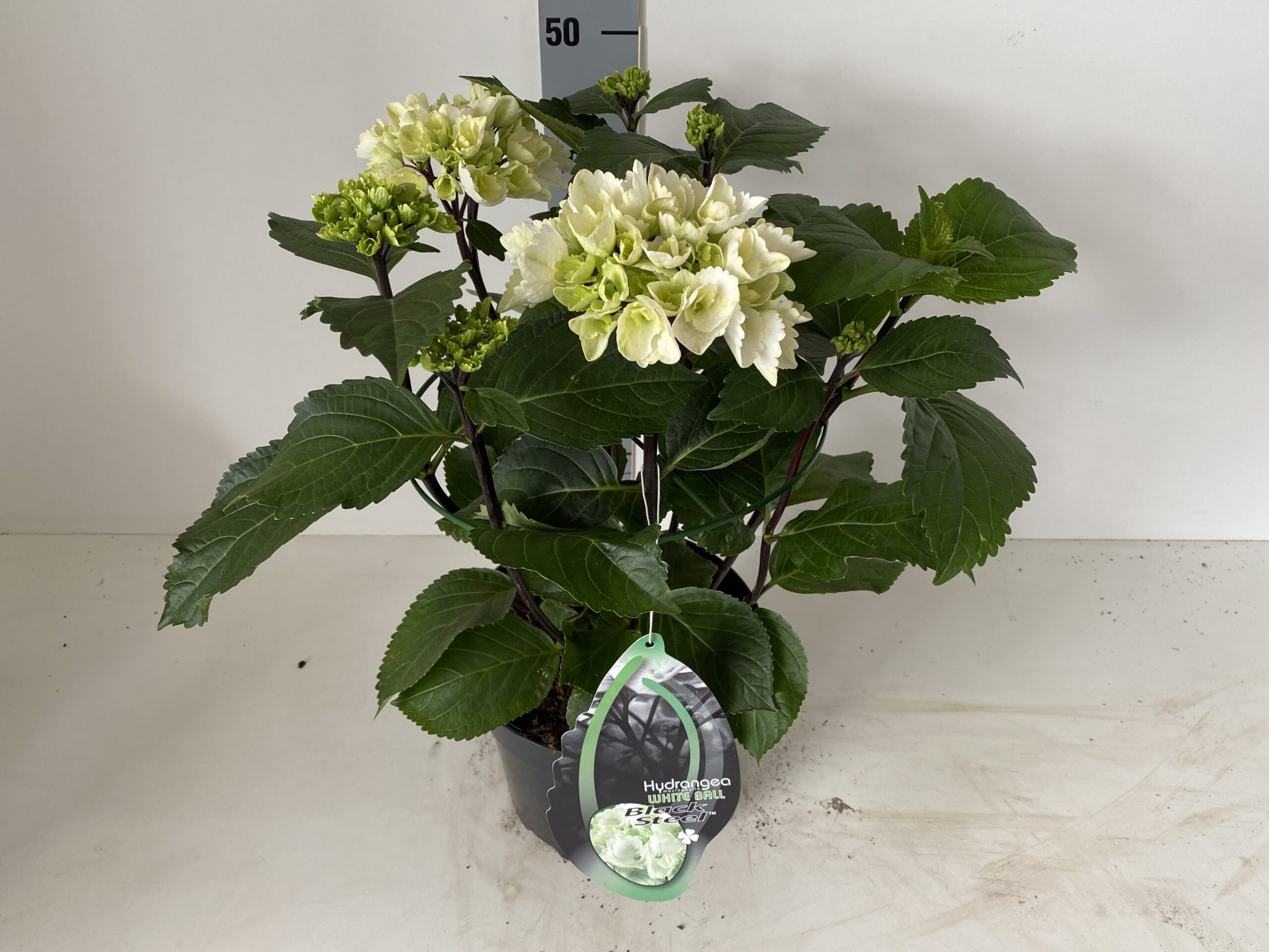 Hortensia Black Steel wit bol wit 5 liter Deze plant wordt ongeveer 80 cm hoog, bloemen van mei tm september Winterhard